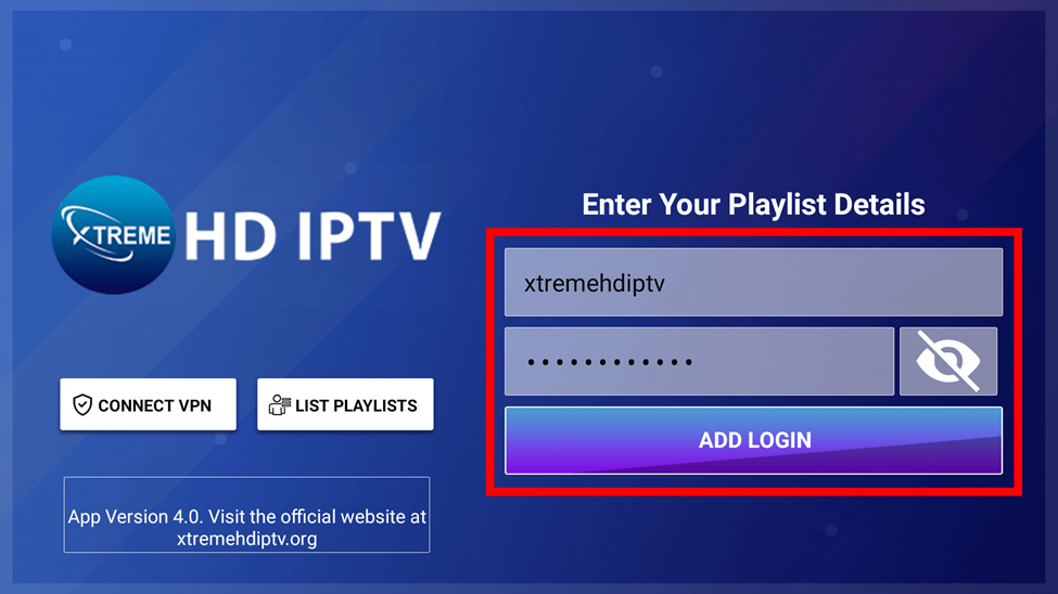 3. Carefully enter the login credentials that were sent to your email after you purchased your subscription from 4kxtremeiptv.org.